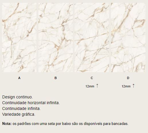 O caráter e a nobreza do clássico mármore branco materializam-se numa elegante superfície caracterizada pelos seus veios luminosos com detalhes dourados distintivos. Permite projetar continuidade infinita horizontal e vertical, criando uma superfície sem fim.